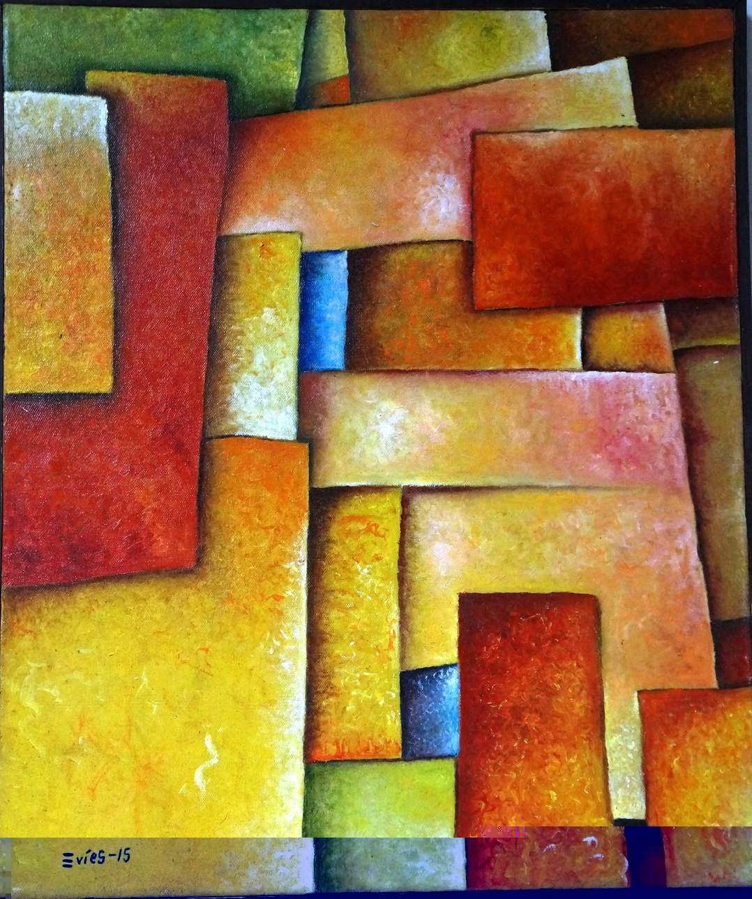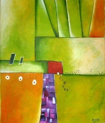 Paisaje; memoria; huella humana. La obra de Evies se nutre de paisajes áridos, vistas fragmentadas y escenarios donde la presencia humana es sugerida más que representada. A través del color, la textura y el volumen, sus piezas hablan de abandono, deterioro ambiental y memoria colectiva. Cada obra funciona como una cartografía emocional que invita al espectador a reflexionar sobre su relación con el entorno y con la historia que lo habita.