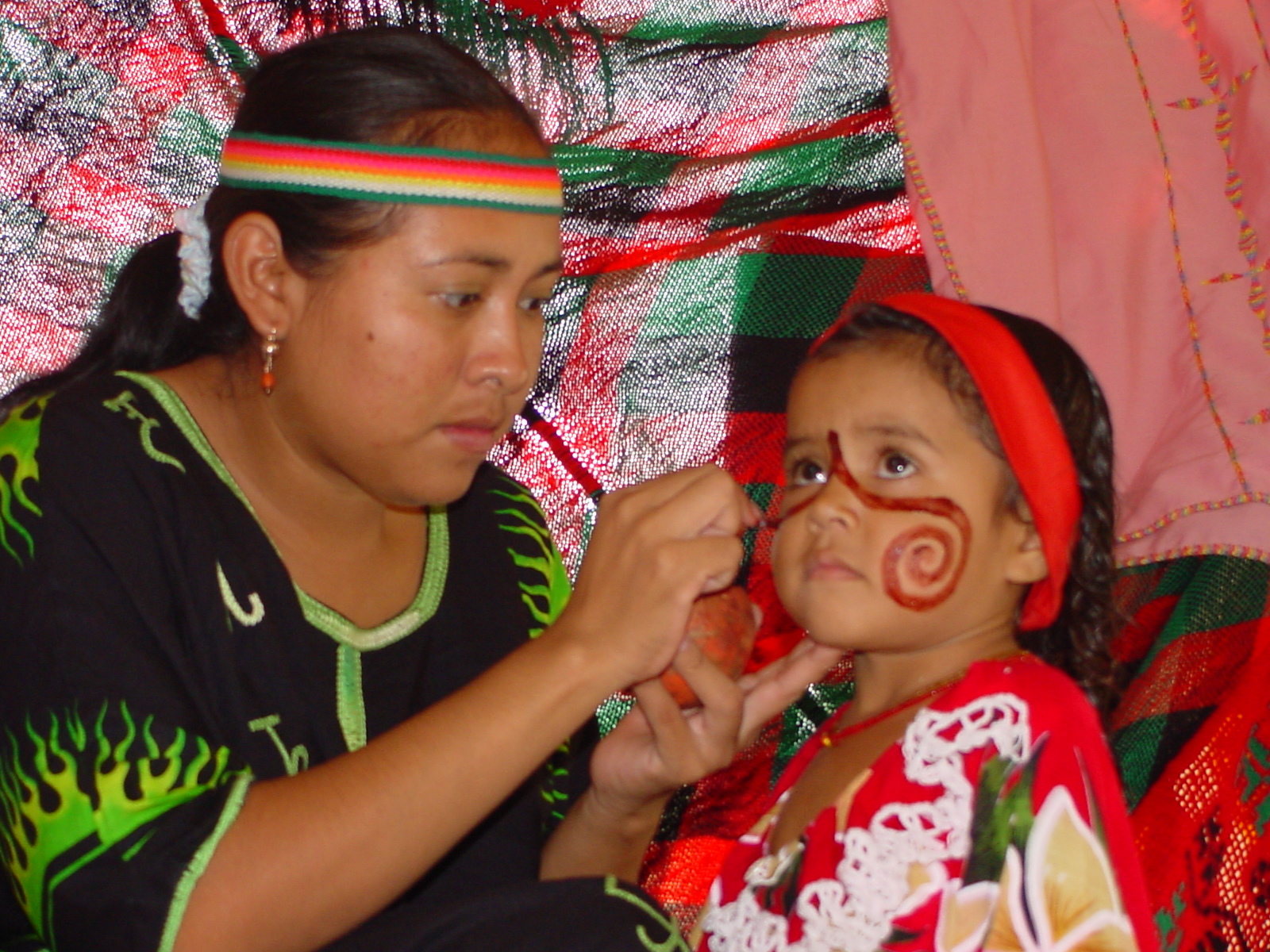 En esta cultura, el maquillaje no es cosmético, es ritual. Una piedra secreta, revelada solo en sueños, otorga el tinte rojo para los diseños faciales. El espiral pintado en el rostro simboliza el inicio de una vida cuyo final es un misterio, porque el Wayuu reconoce el comienzo, pero no el final.